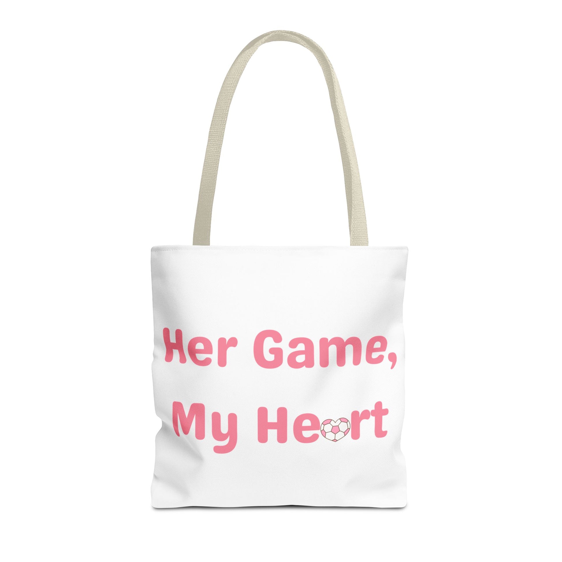The Her Game, My Heart Tote Bag is a tribute to the unbreakable bond between a mom and her athlete. It is for the mom and daughter who have a connection that is built on carpool rides, late night hotel talks, and everything in between.